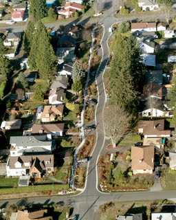 The design includes swales similar to those in the Pinehurst Green Grid Drainage Project on the eastern side of Pinehurst. The swales offer drainage that more closely mimics the natural landscape prior to development than traditional piped systems. For photos and more information on some completed swales/natural drainage projects in Seattle, link here. Here are a few of the photos courtesy of Seattle Public Utilities.