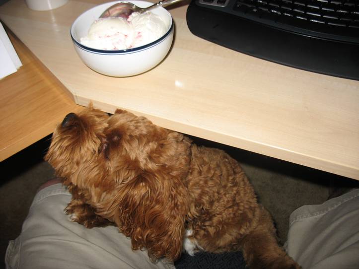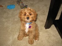 Harvey has had Baxter since early June when he was just seven weeks old (April 18, 2009) and barely 3 pounds – he’s a Cockapoo adopted from Echo Hills Ranch out of Spokane. Baxter is a bundle of very soft fur who flirts shamelessly with all the people in the neighborhood, particularly his “girlfriend”, the elderly Russian woman that lives next door with her daughter and son-in-law. He loves everyone and everything, except for the cat down the block, Stray Kitty (Stray Kitty isn’t a nice cat).